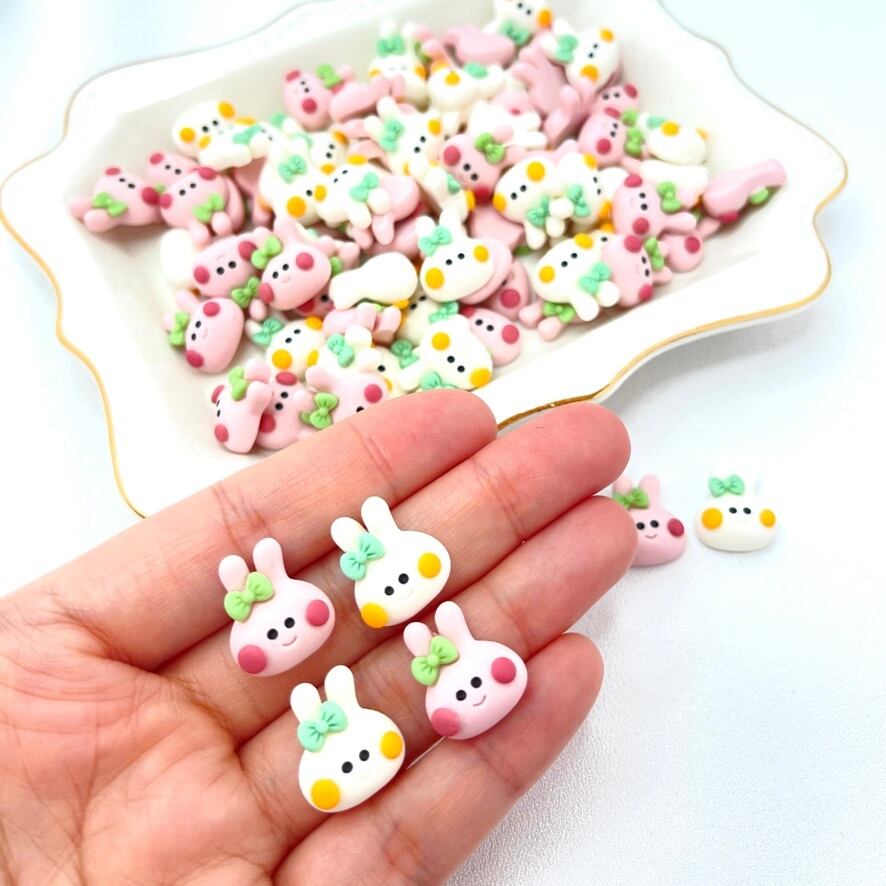 【2個】ミニリボンうさぎカボション デコパーツ
