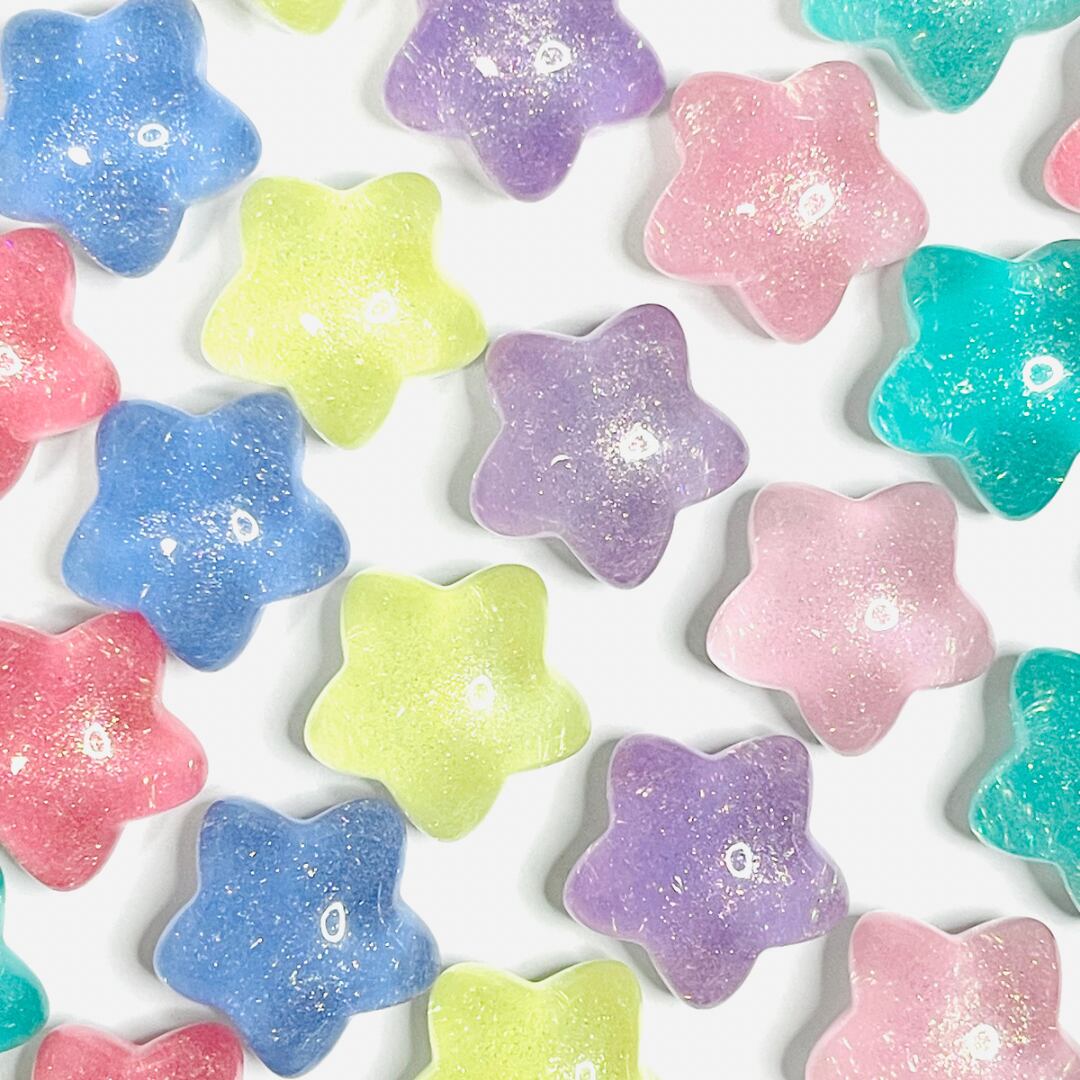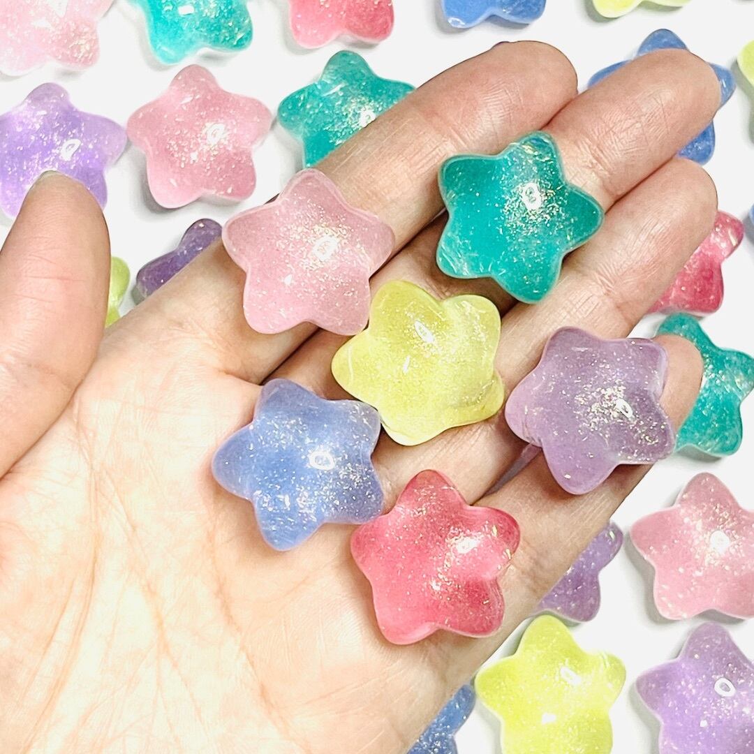 【4個】グリッター入りころころスター カボション デコパーツ