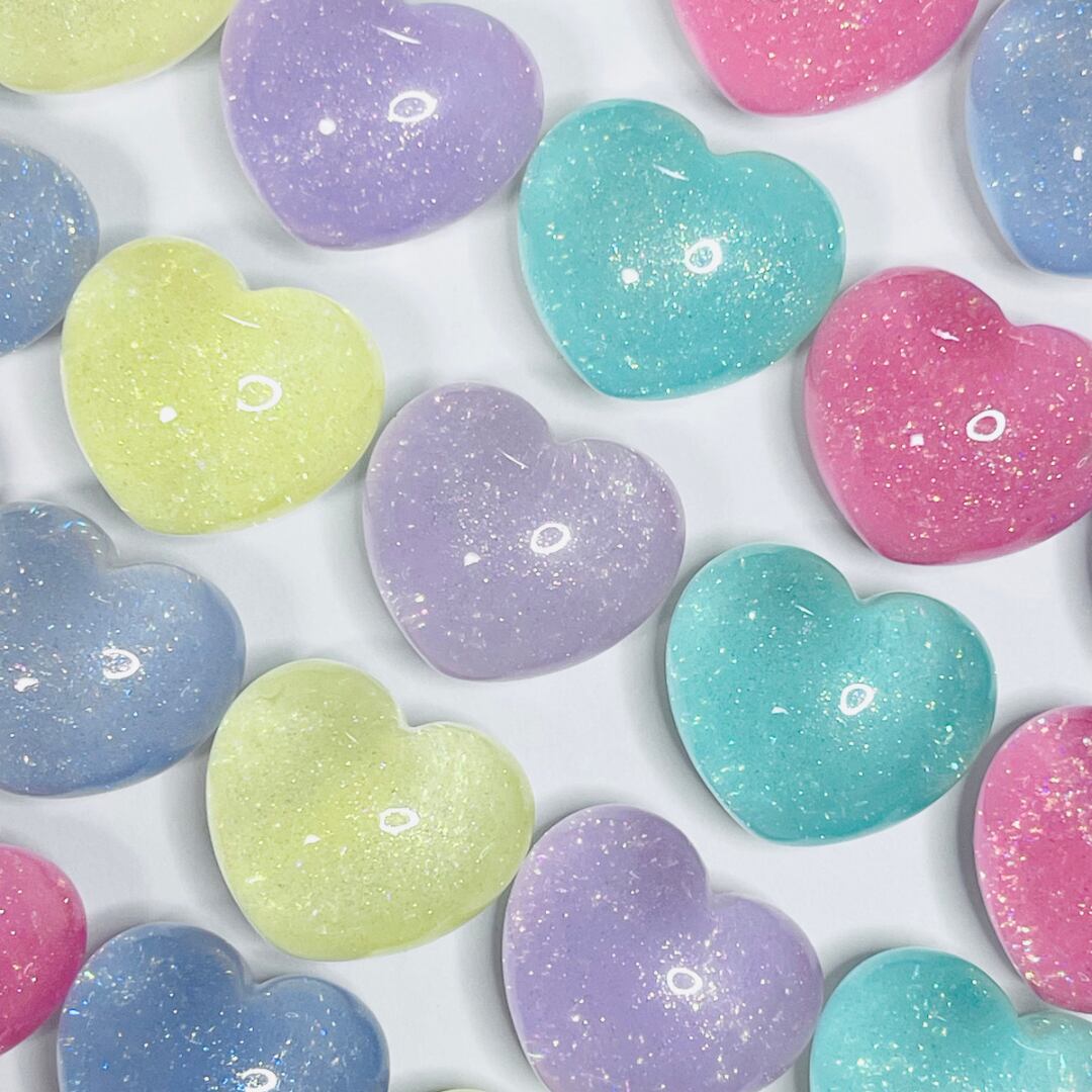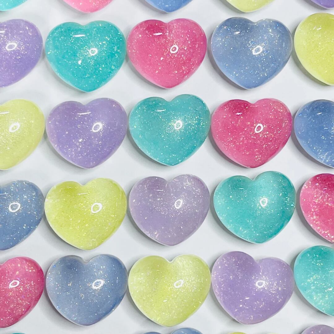 \お得パック/【25個】グリッター入りころころハート カボション デコパーツ