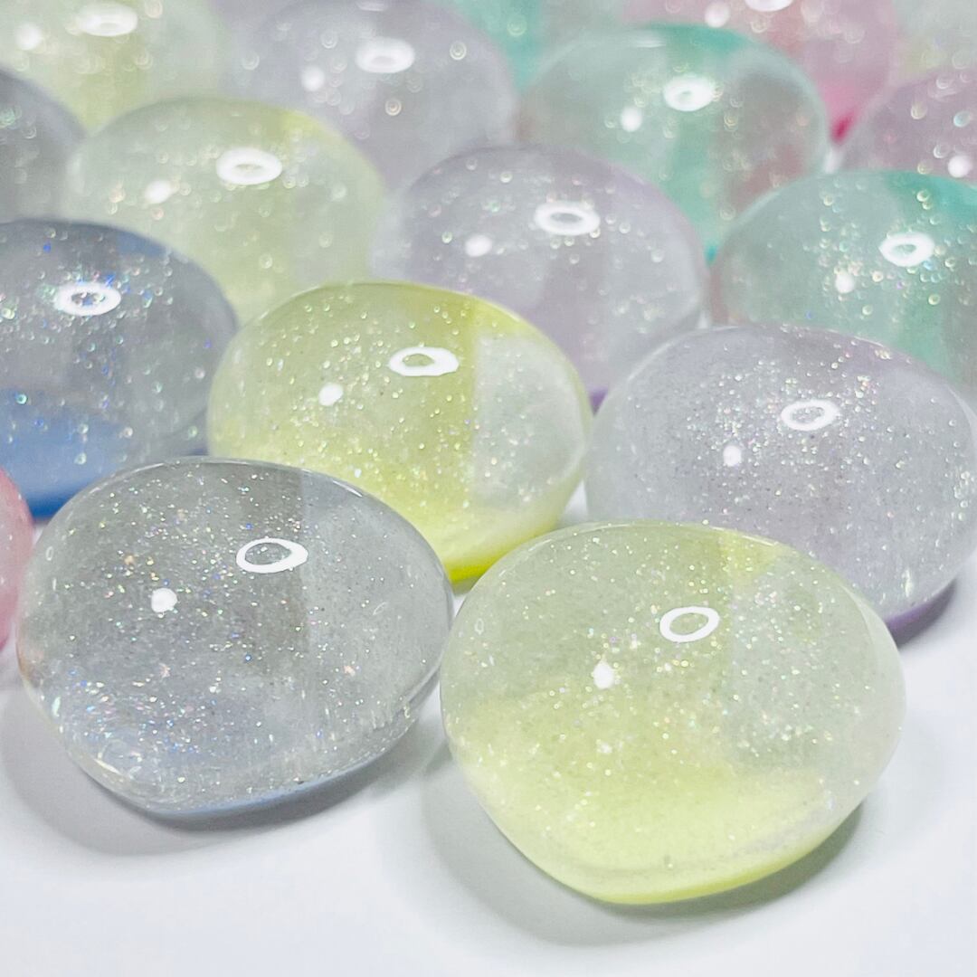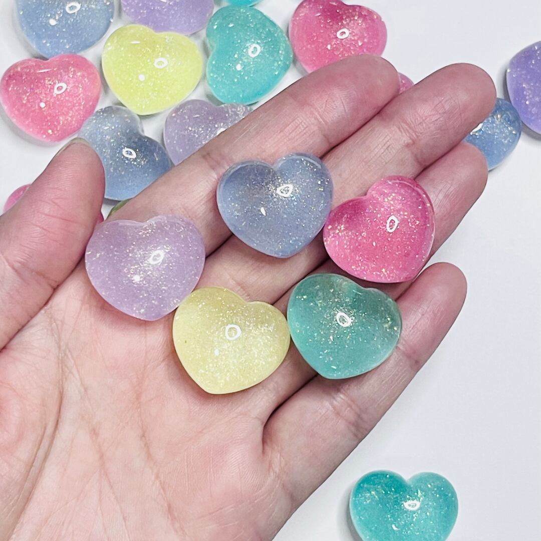 【5個】グリッター入りころころハート カボション デコパーツ