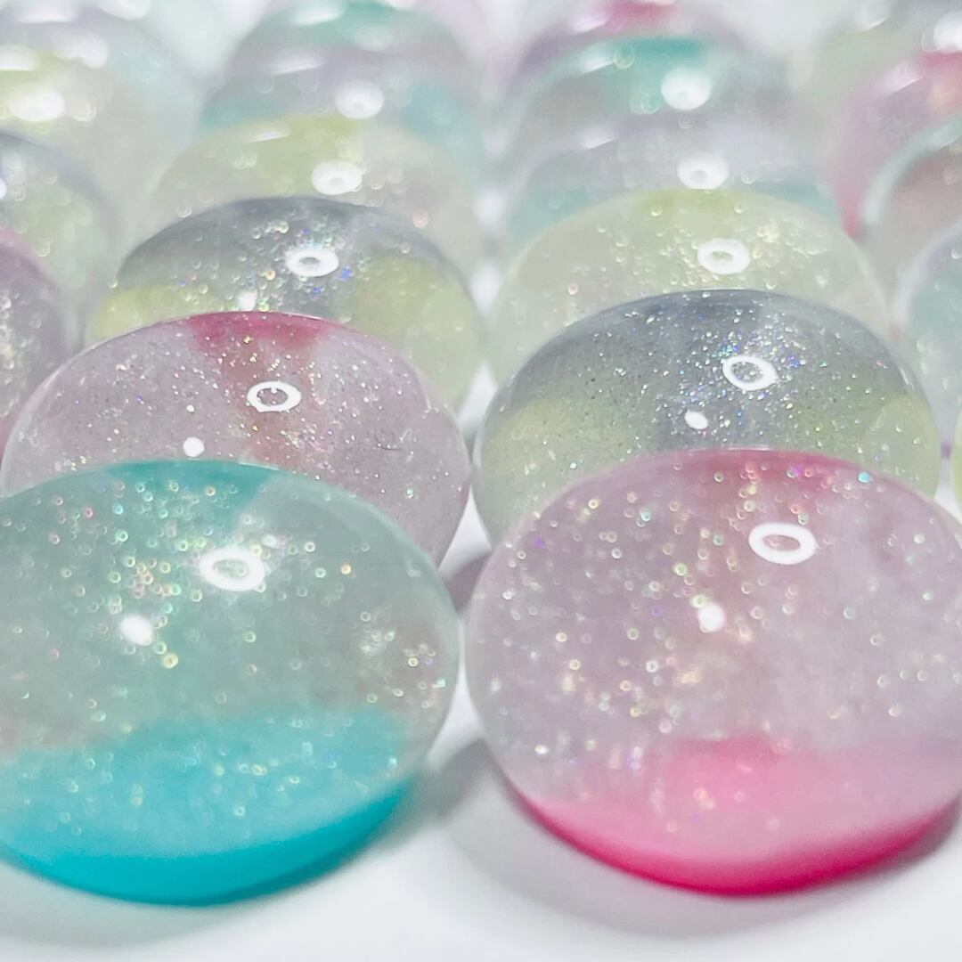 【4個】グリッター入りころころハート カボション デコパーツ