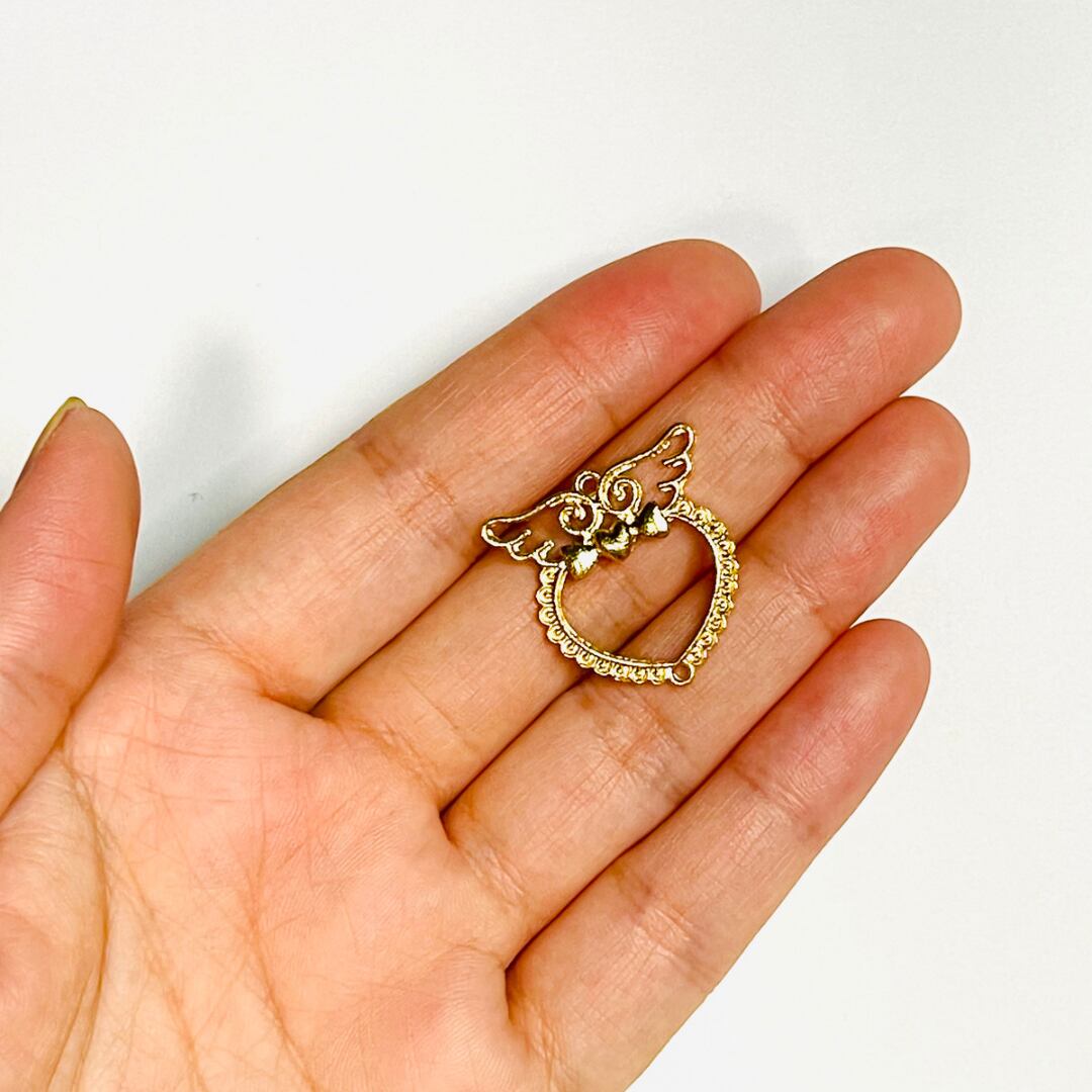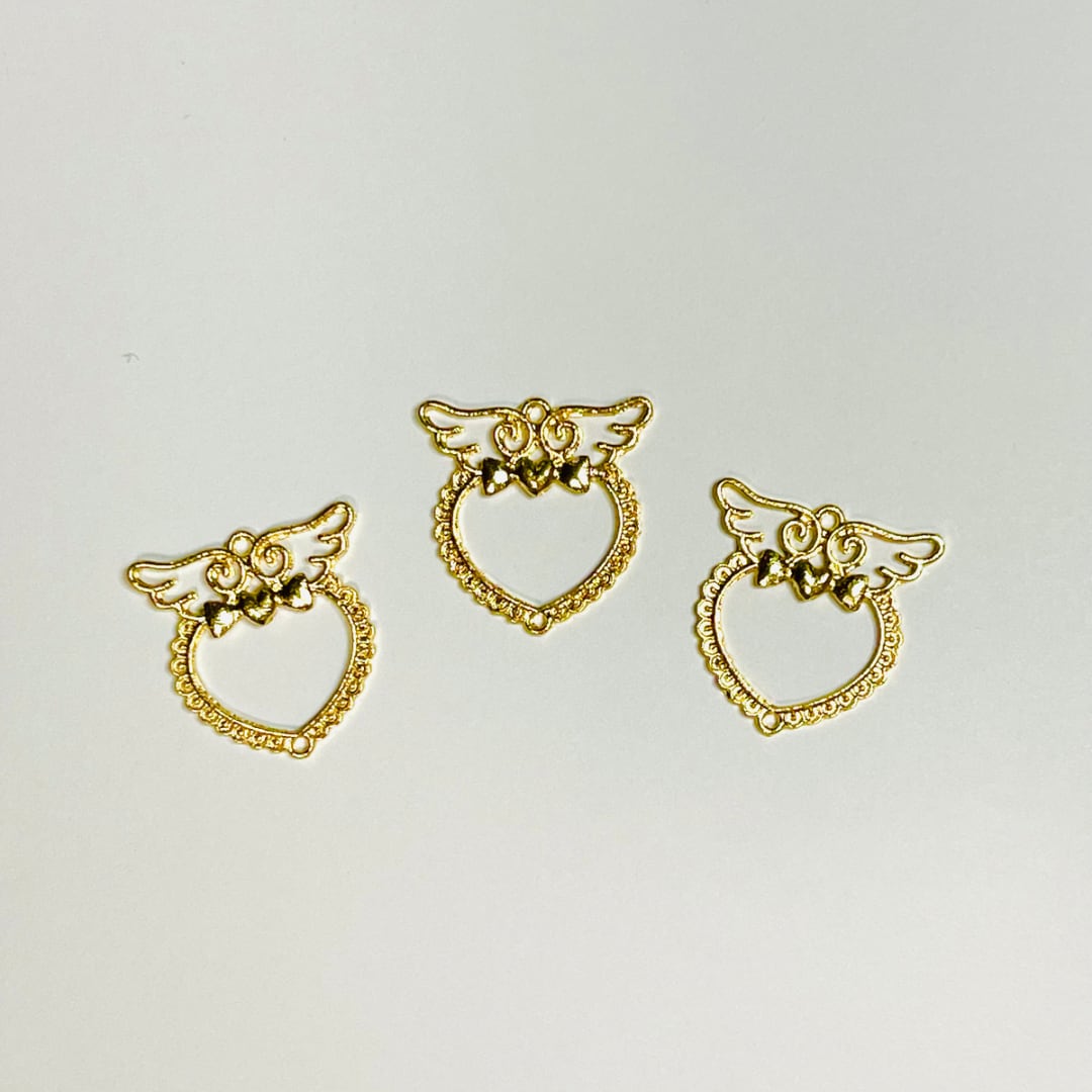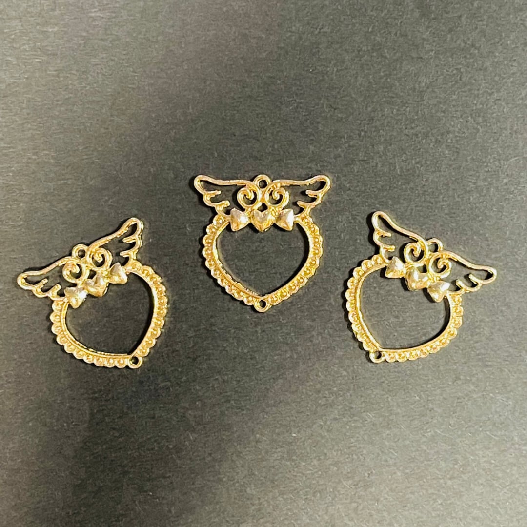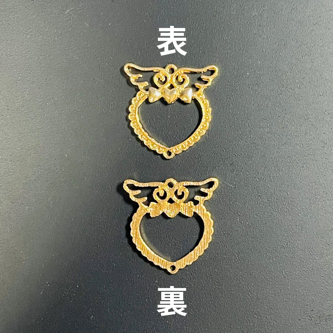 【5個】羽とハートチャーム 透かしパーツ 金属パーツ デコパーツ