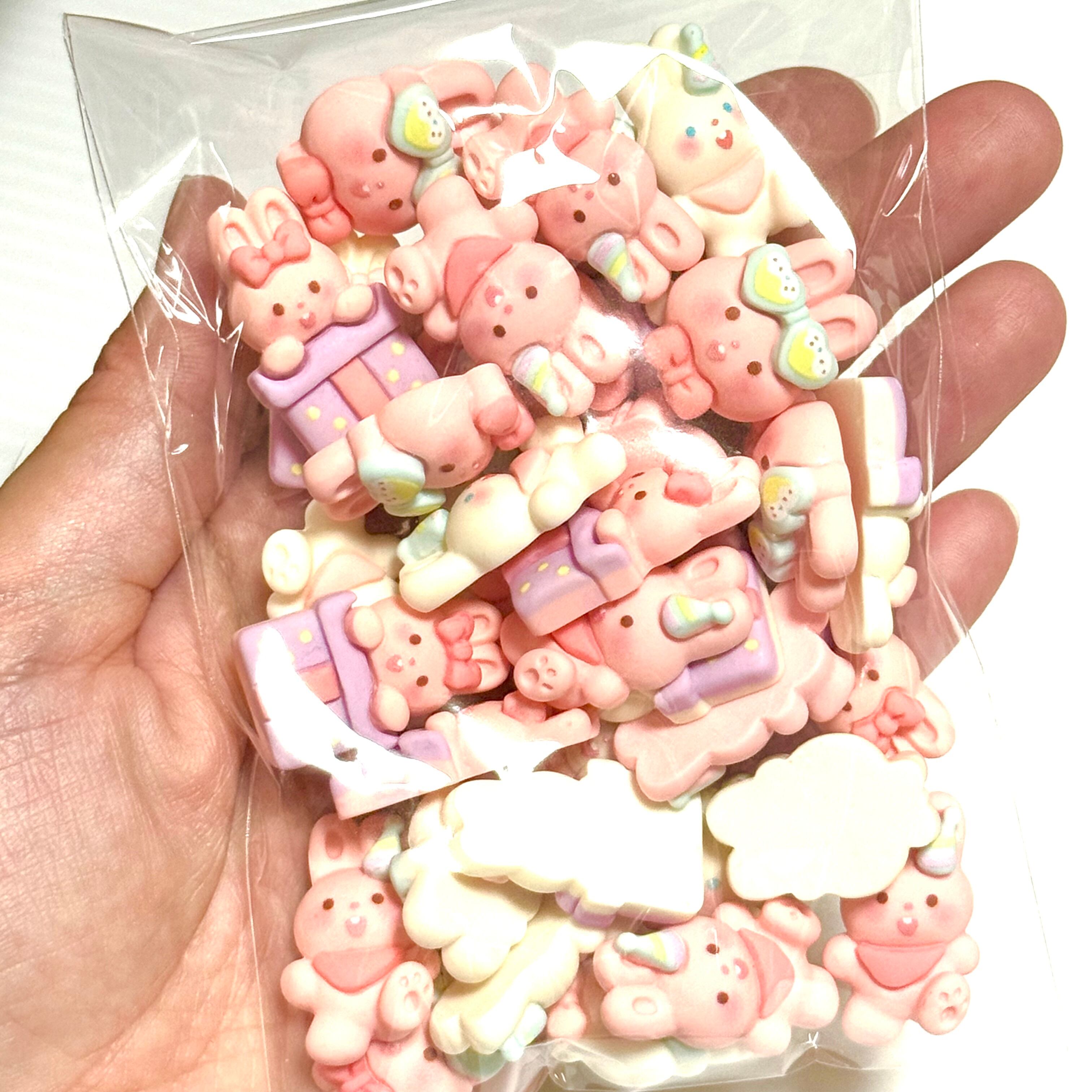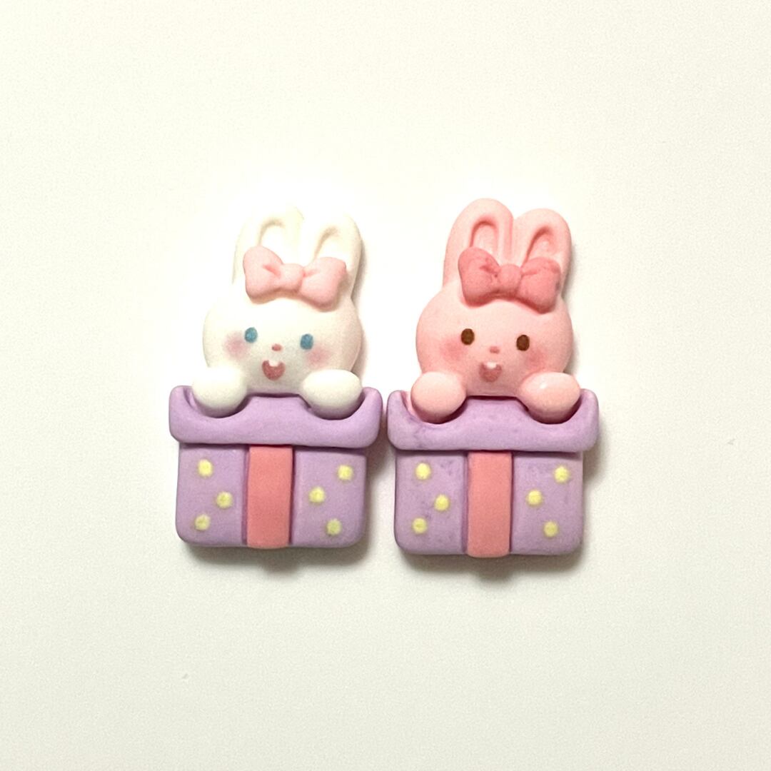 訳あり【ランダム35個】ピンクとホワイトうさぎ カボション デコパーツ