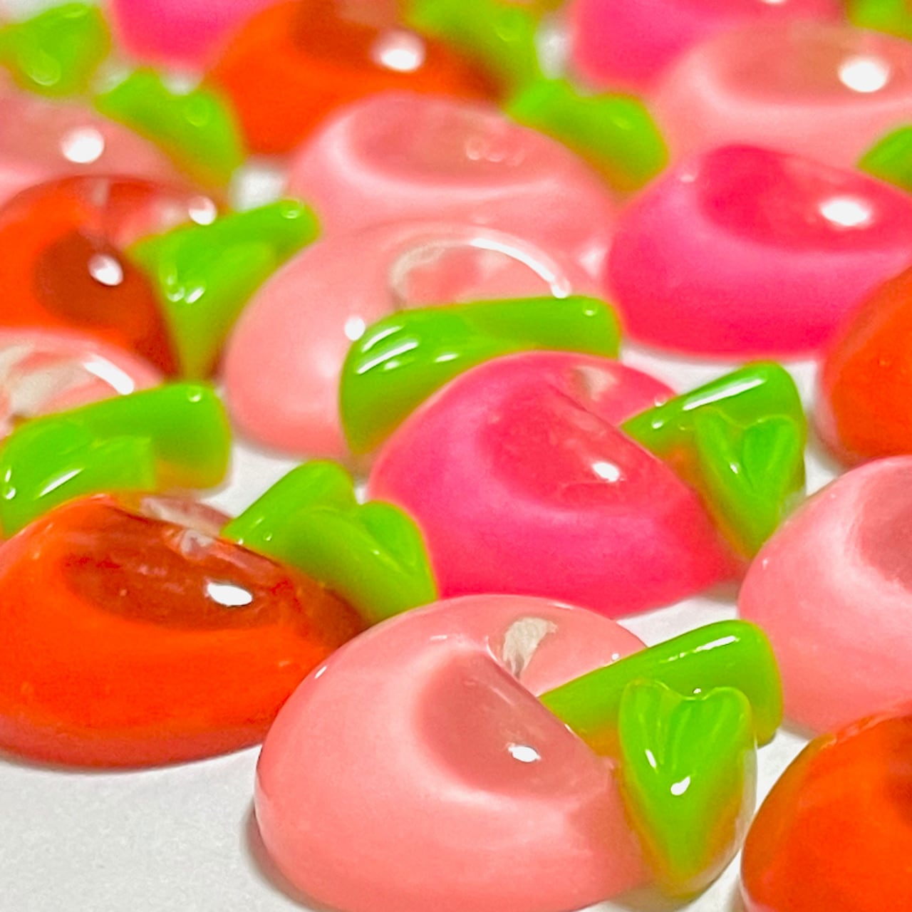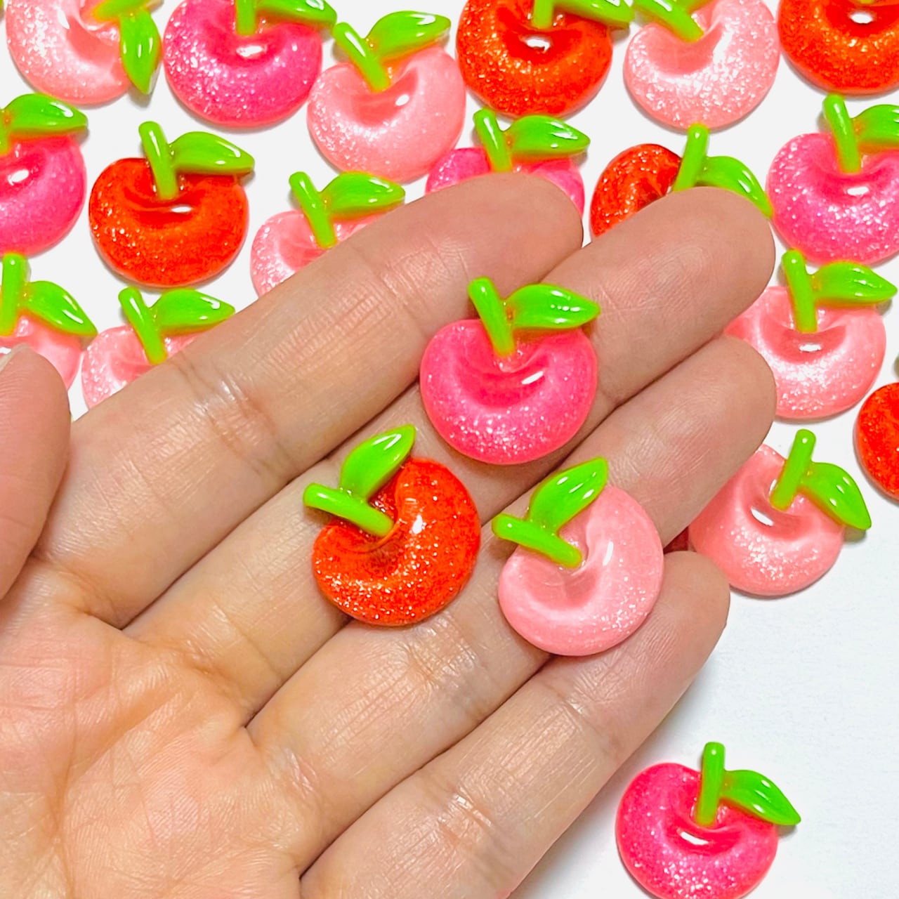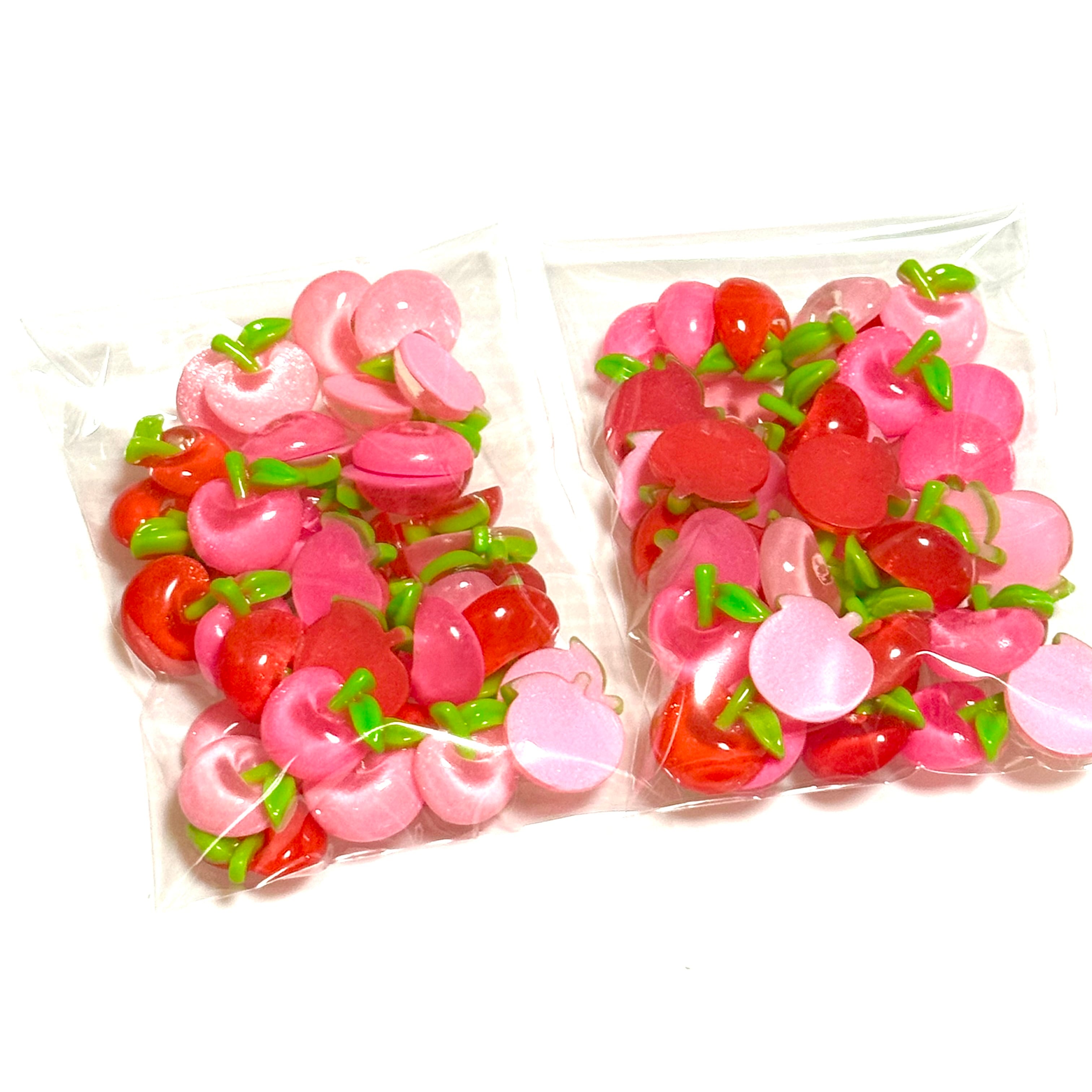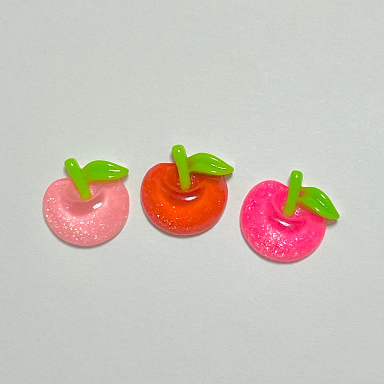 訳あり【ランダム40個】クリアラメりんご デコパーツ