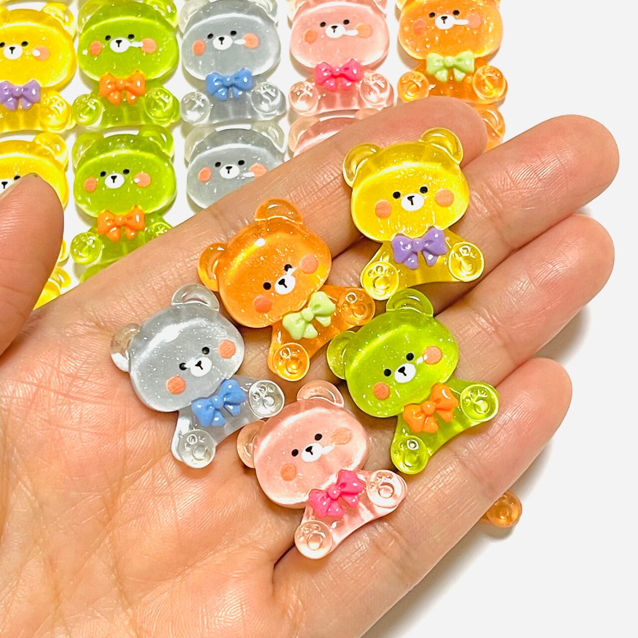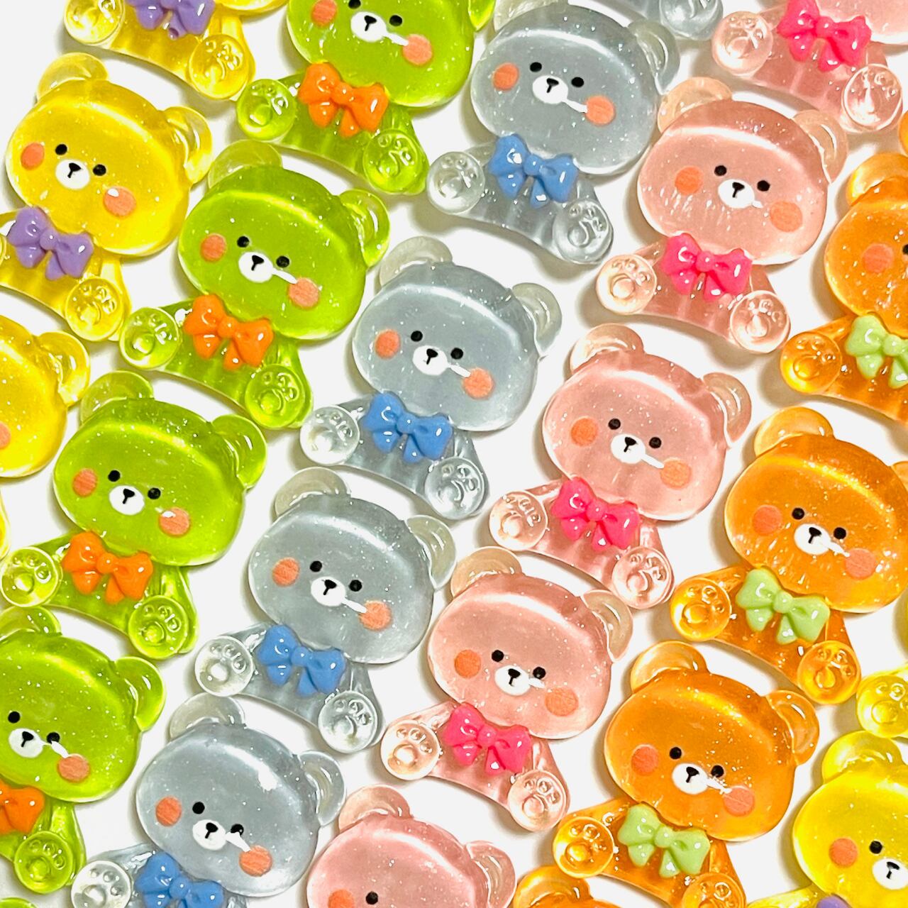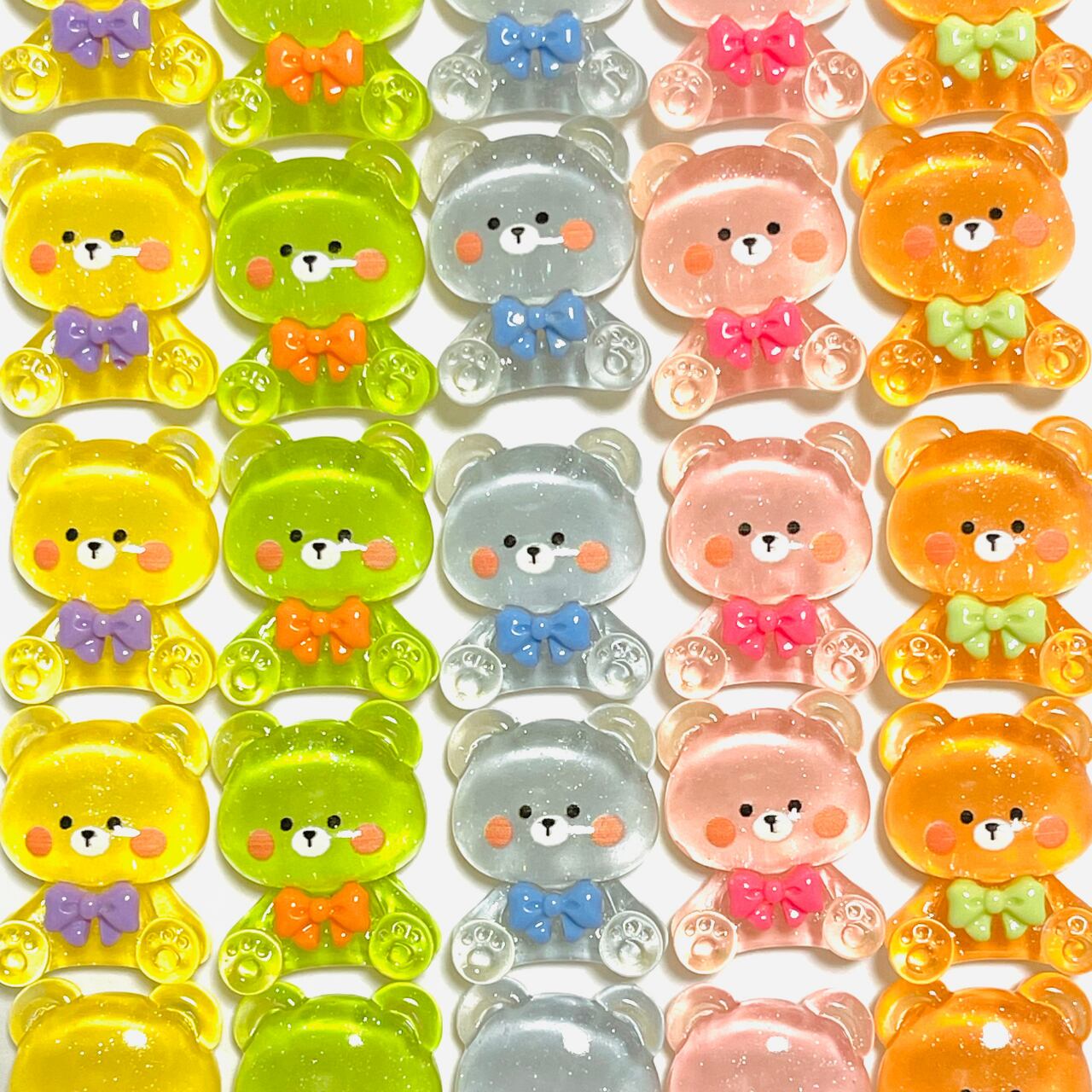 【4個】おすましおすわりクリアくま カボション デコパーツ