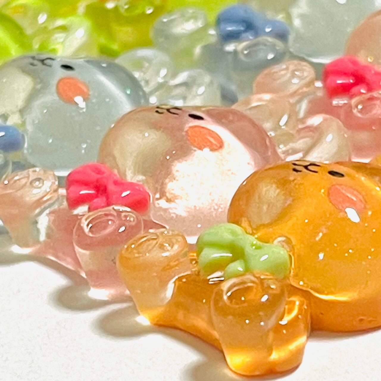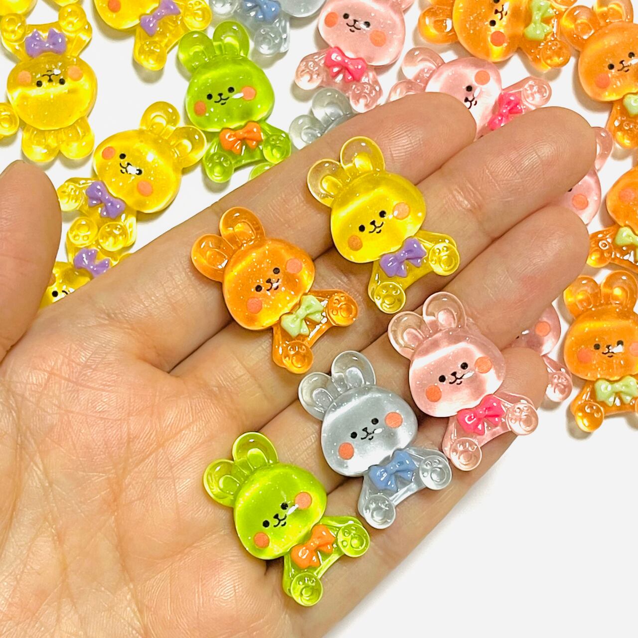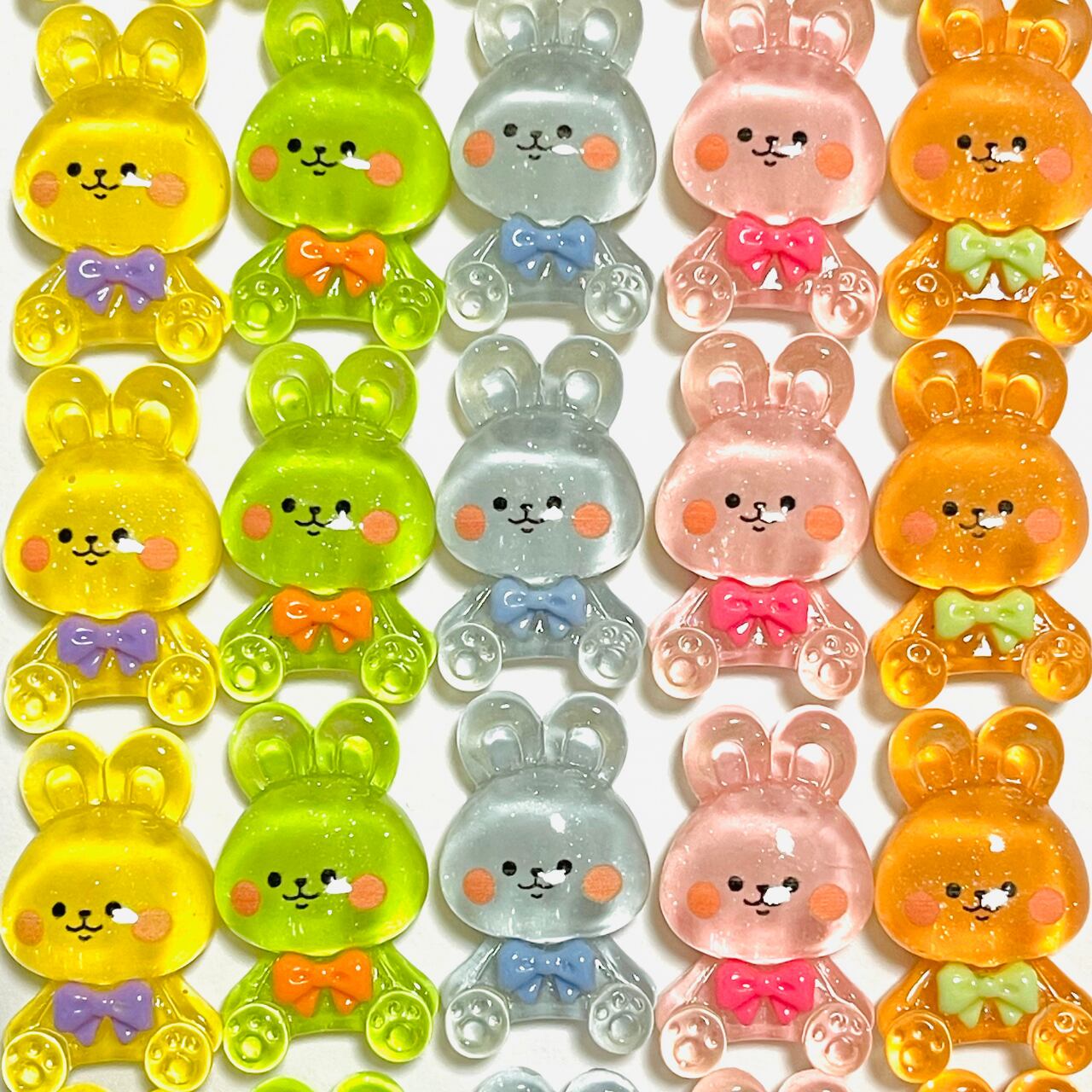 \お得パック/【20個】おすましおすわりクリアうさぎ カボション デコパーツ