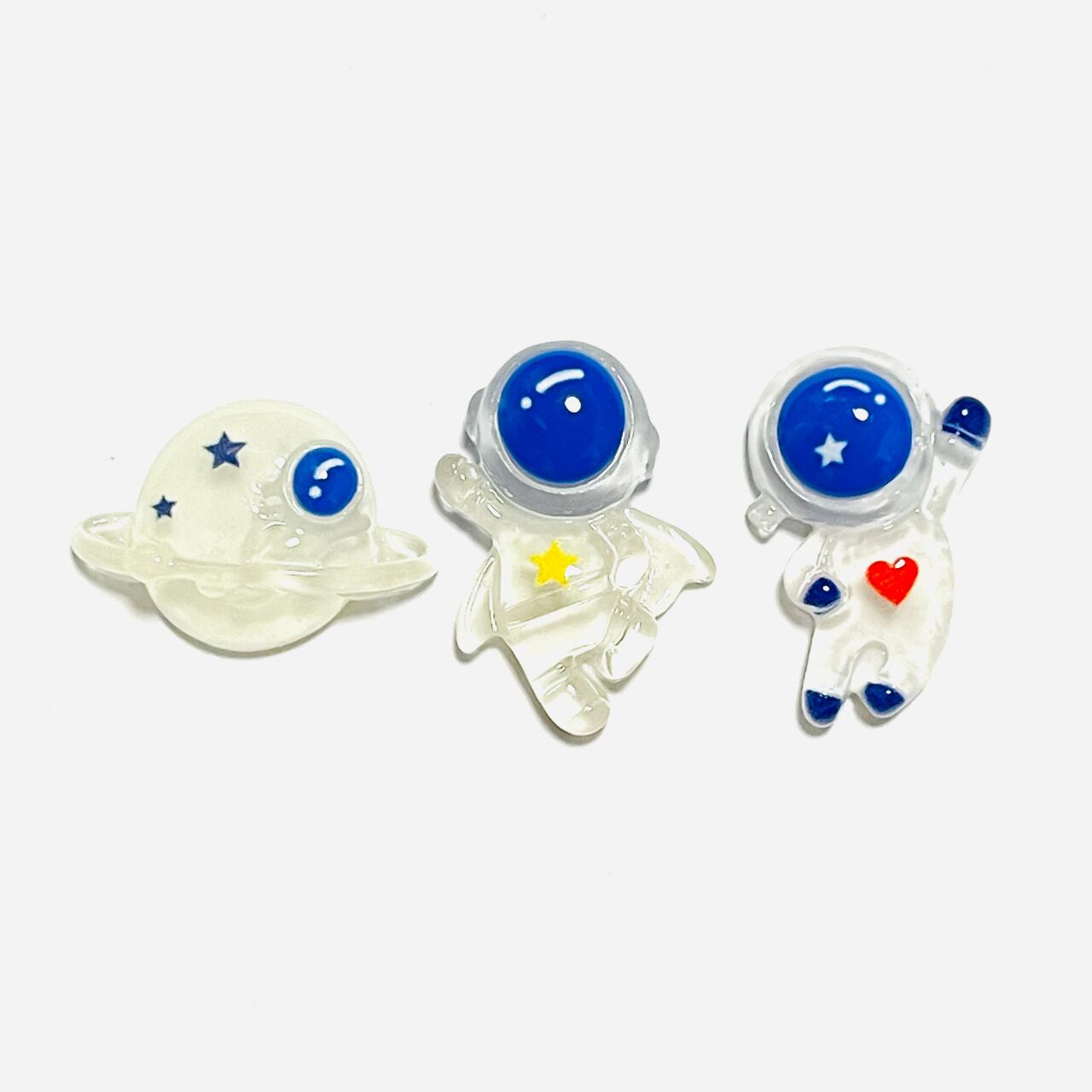 【4個】蓄光スーパー宇宙飛行士② カボション デコパーツ
