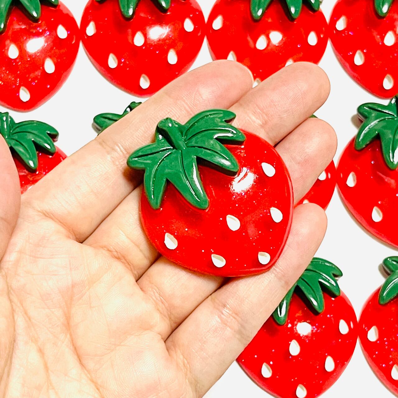 【1個】蓄光⭐︎大きな大きなラメ入いちご カボション デコパーツ