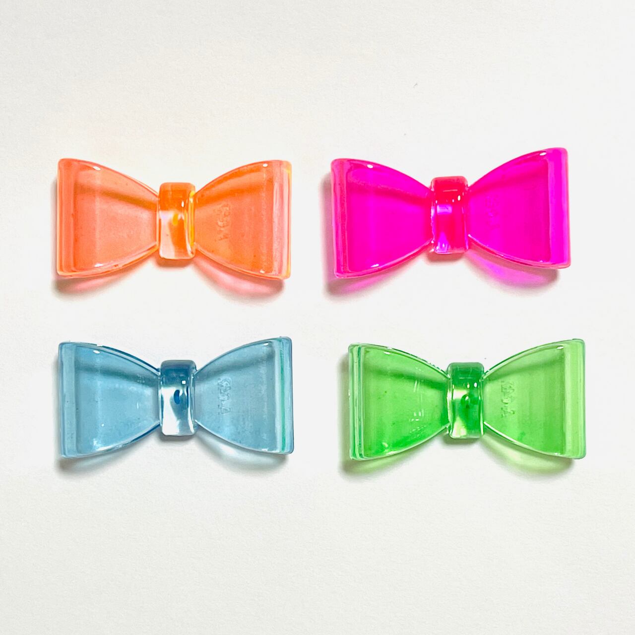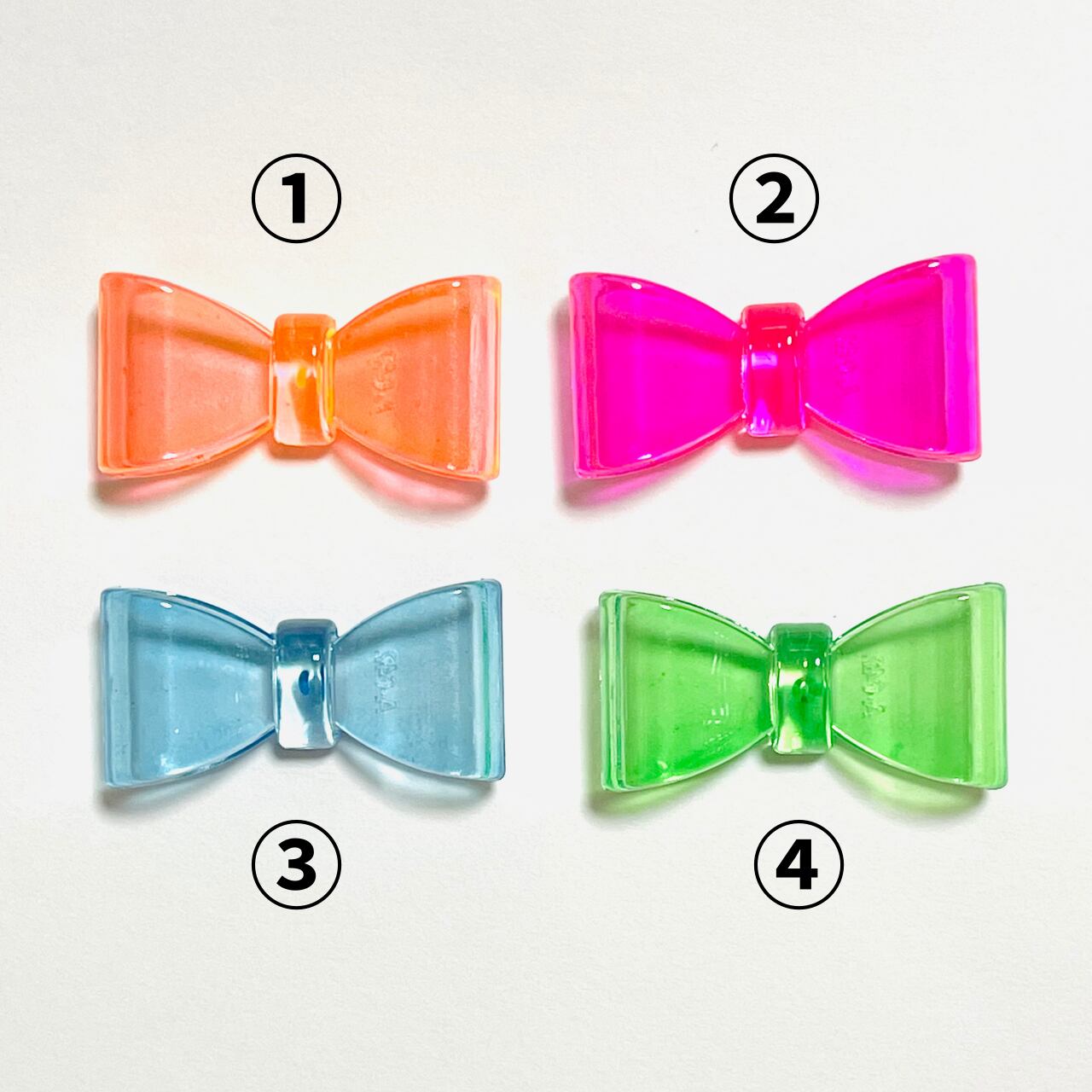 【4個】ネオンカラークリアリボン カボション デコパーツ