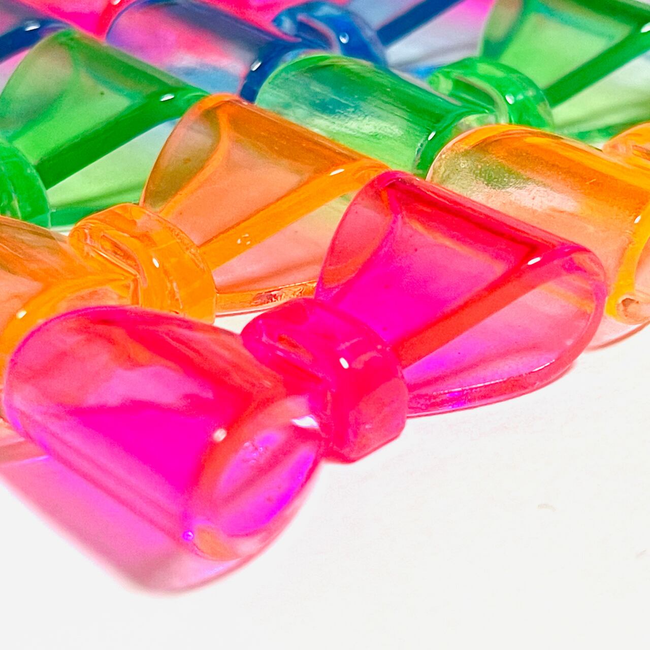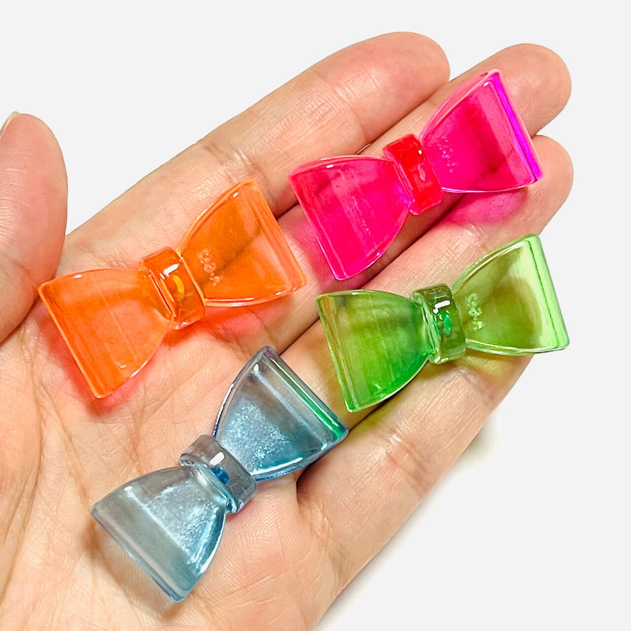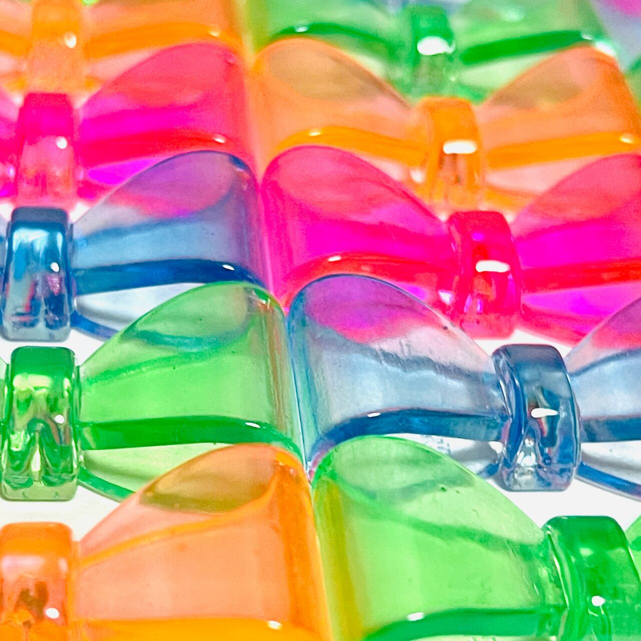 \お得パック/【20個】ネオンカラークリアリボン カボション デコパーツ