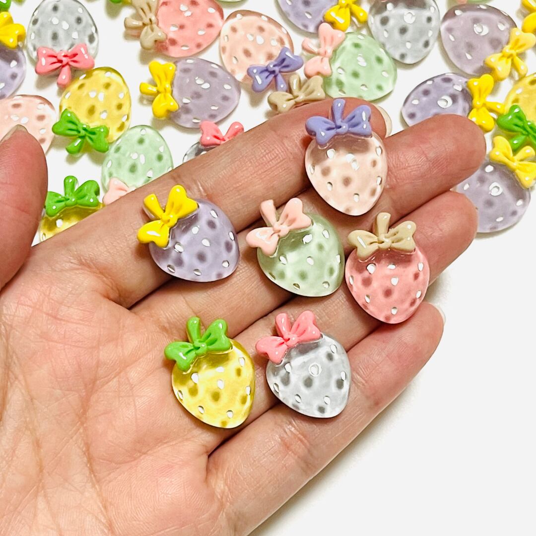 【各1_6個】リボンクリアいちご デコパーツ
