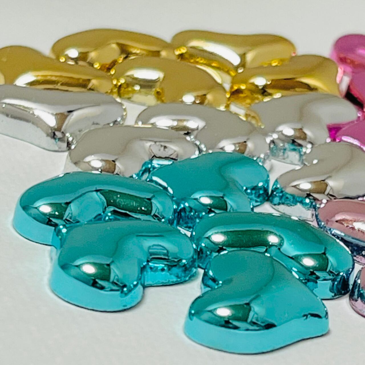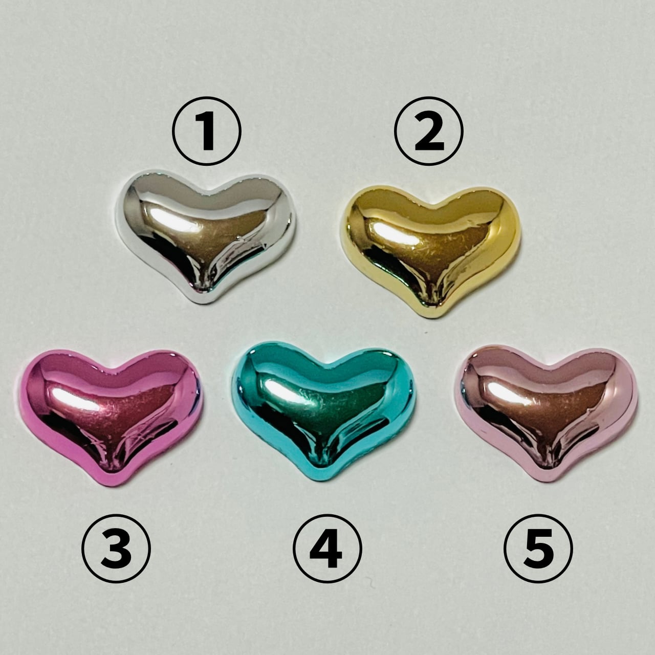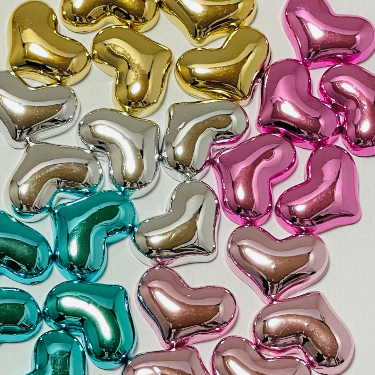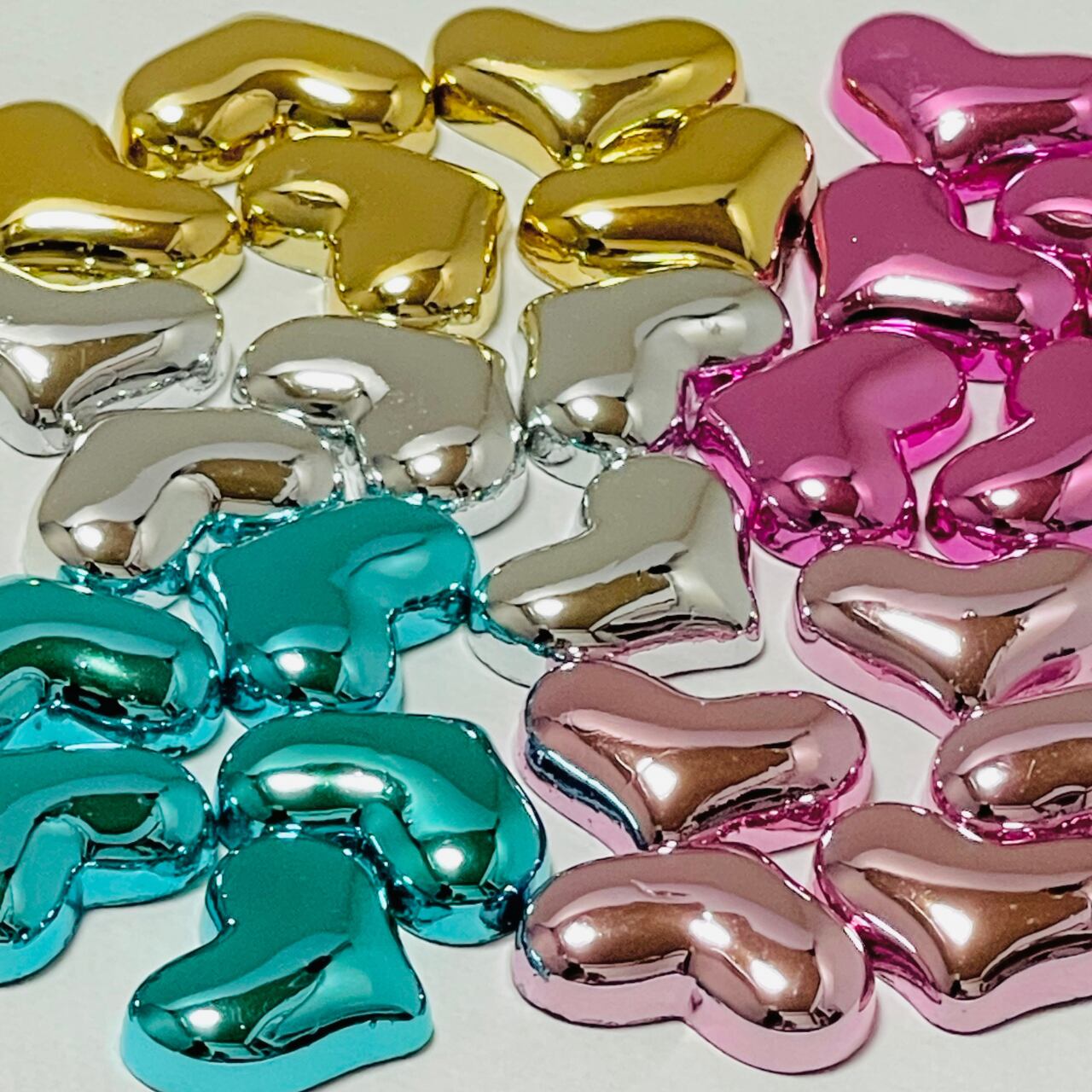 【4個】メタリックハート デコパーツ
