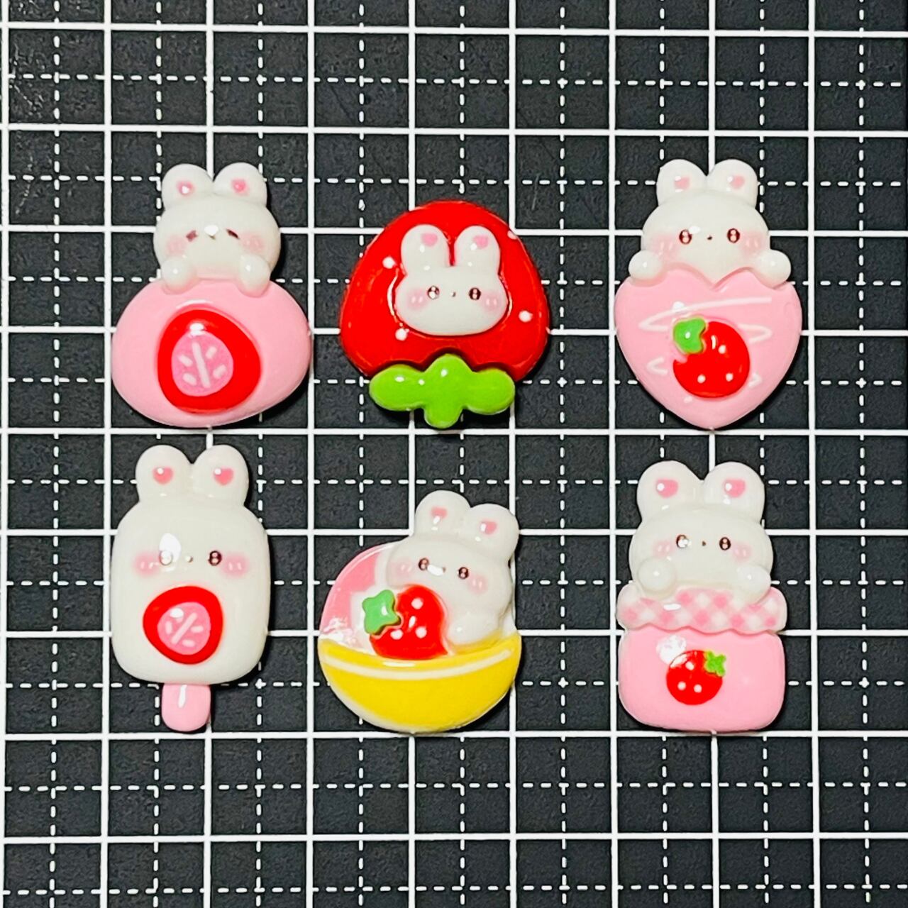 \お得パック/【30個】いちごとうさぎちゃん デコパーツ