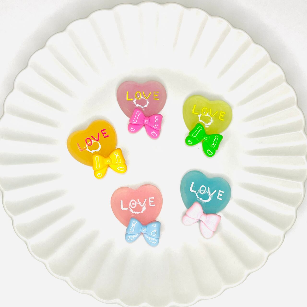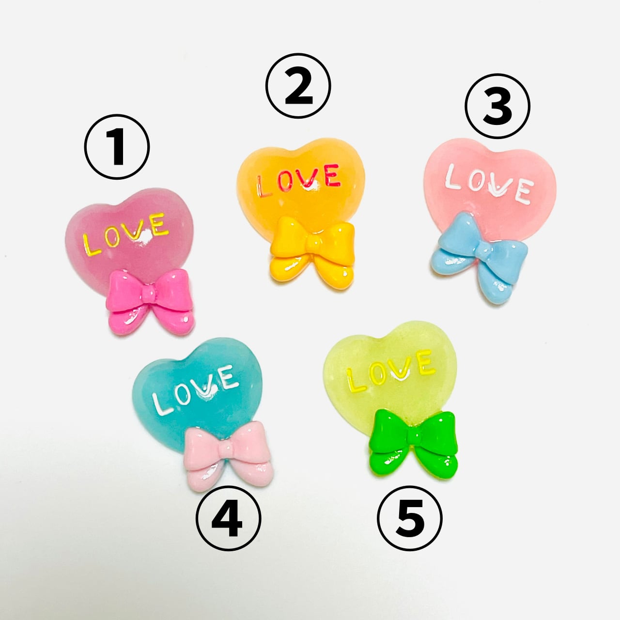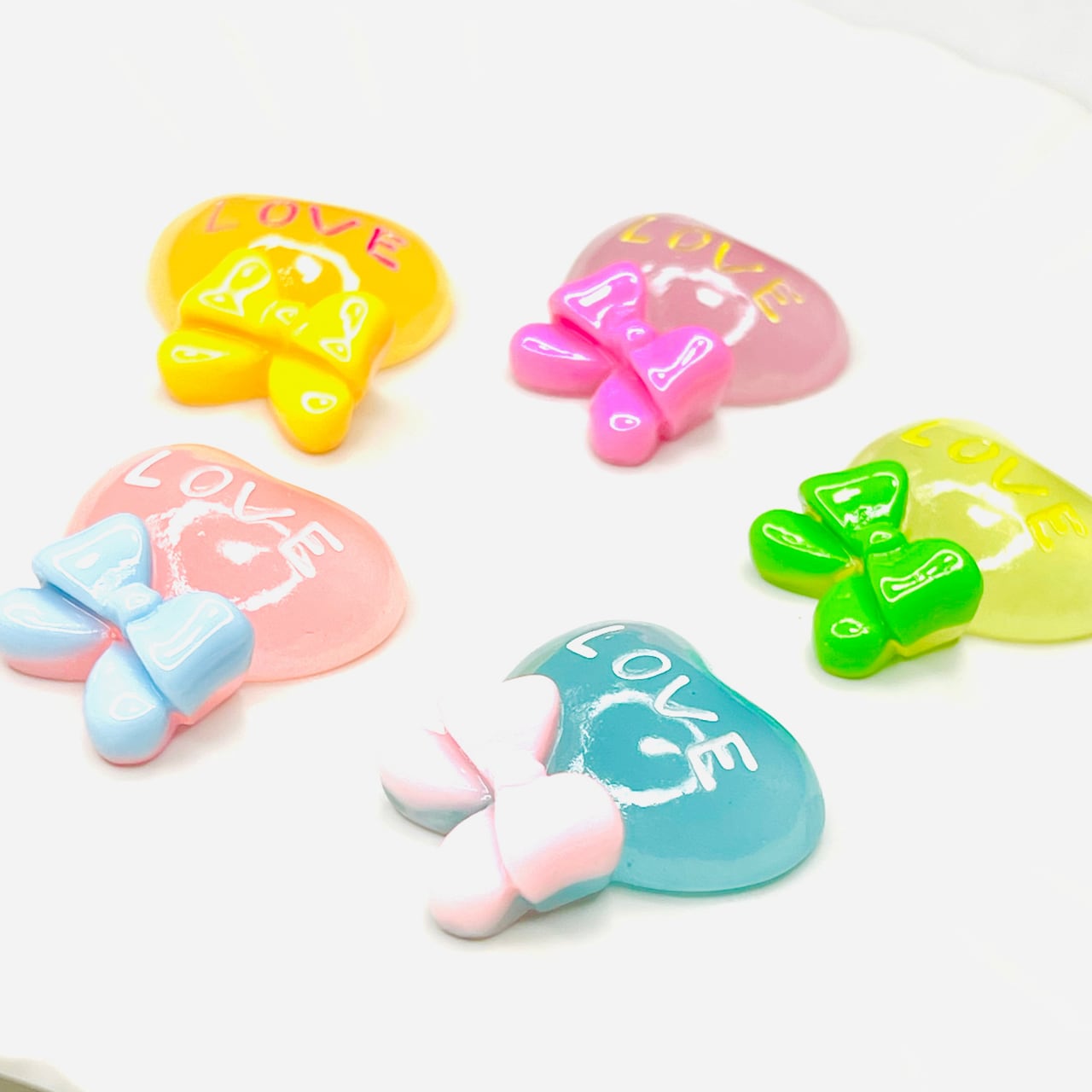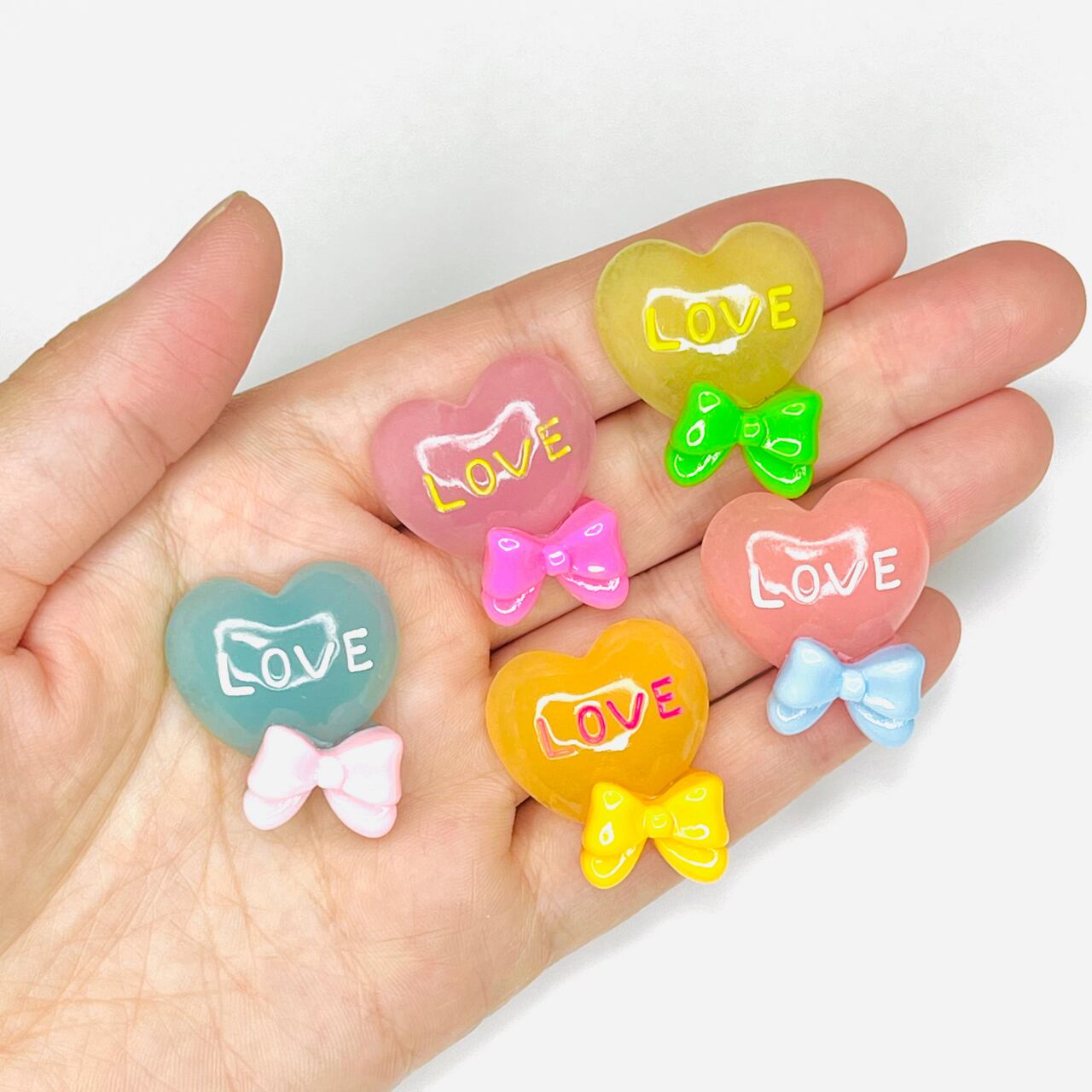 【4個】蓄光⭐︎「Love」ハートリボン デコパーツ
